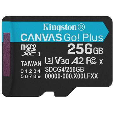A Kingston Canvas Go Plus A2 microSDXC 256GB egy nagy teljesítményű memóriakártya akciókamerákhoz, drónokhoz és Android okostelefonokhoz, ahol a nagy írási sebesség kulcsfontosságú. U3 és V30 minősítéssel 4K Ultra HD videofelvételt garantál, A2 alkalmazásosztályával pedig garantálja a játékok és alkalmazások gyors betöltését mobileszközén.