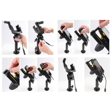 A tartó nagyon masszív, a terminál nem ragad vagy rezeg. A tartó a Brodit ProClip vagy a Brodit tartóalapokhoz és karokhoz rögzíthető.