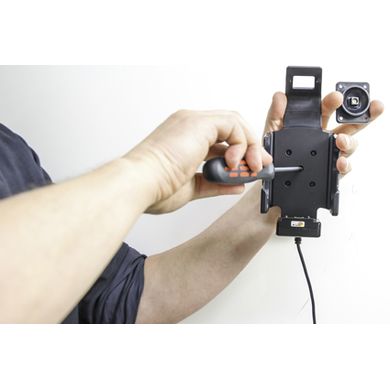 A tartó nagyon masszív, a telefon nem ragad bele, és nem rezeg. A tartó zsanérral rendelkezik, amelynek köszönhetően bármikor egyszerűen elforgathatja a telefont tájoló vagy portré módban, illetve megdöntheti azt. A tartó a Brodit ProCliphez csatlakozik.