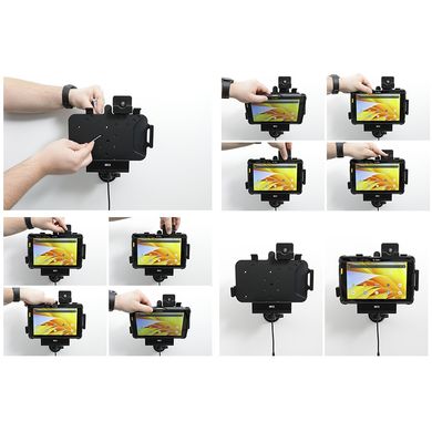 A tartó nagyon masszív, a tablet nem ragad bele, és nem rezeg. A tartó a Brodit ProClip vagy a Brodit tartóalapokhoz és karokhoz rögzíthető.