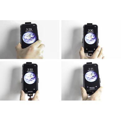 A tartó nagyon masszív, a telefon nem ragad bele, és nem rezeg. A tartó zsanérral rendelkezik, amelynek köszönhetően bármikor egyszerűen elforgathatja a telefont tájoló vagy portré módban, illetve megdöntheti azt. A tartó a Brodit ProCliphez csatlakozik.