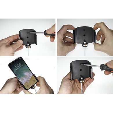 A tartó nagyon masszív, a telefon nem ragad bele, és nem rezeg. A tartó zsanérral rendelkezik, amelynek köszönhetően bármikor egyszerűen elforgathatja a telefont tájoló vagy portré módban, illetve megdöntheti azt. A tartó a Brodit ProCliphez csatlakozik.