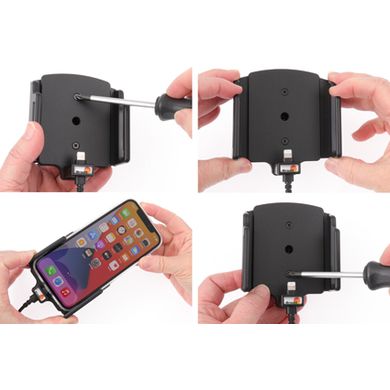 A tartó nagyon masszív, a telefon nem ragad bele, és nem rezeg. A tartó zsanérral rendelkezik, amelynek köszönhetően bármikor egyszerűen elforgathatja a telefont tájoló vagy portré módban, illetve megdöntheti azt. A tartó a Brodit ProCliphez csatlakozik.
