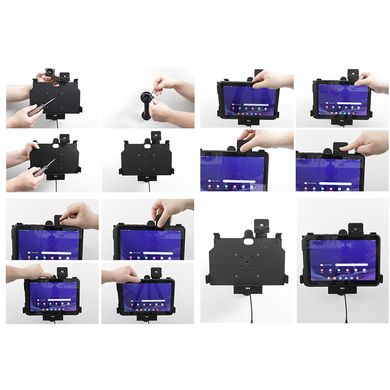 A tartó nagyon masszív, a tablet nem ragad bele, és nem rezeg. A tartó zsanérral rendelkezik, amely lehetővé teszi, hogy a táblagépet bármikor könnyedén elfordíthassa álló vagy álló helyzetbe, vagy megdönthesse. A tartó a Brodit ProCliphez vagy a Brodit rögzítőalapokhoz és karokhoz rögzíthető.