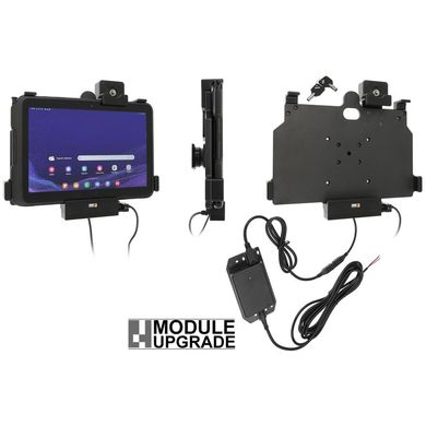 Táblagép tartó Samsung Galaxy Tab Active 4 Pro eredeti tokban, a műszerfal alá rejtett tápegységgel. A táblagépet a POGO-csatlakozón