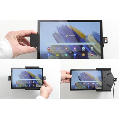 Töltőtartó Samsung Galaxy Tab A8 készülékhez tok nélkül, tápellátás CL adapterről USB kimenetekkel, rugós kiesés elleni védelem