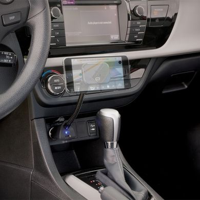 Mágneses e2 autós szivargyújtó tartó USB csatlakozóval és rugalmas karral. Kis és nagy lemez a csomagban.