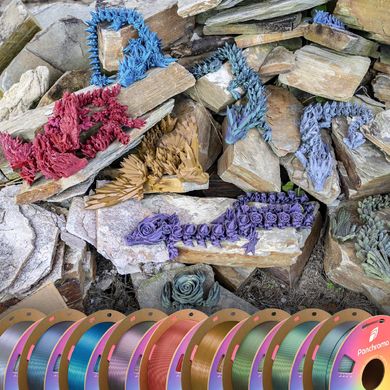 A fényszögtől függően színt változtató, csillogó hatású PLA szál. Finom por csillámok helyett, könnyű nyomtatás. 1,75 mm, 1 kg, környezetbarát orsó.