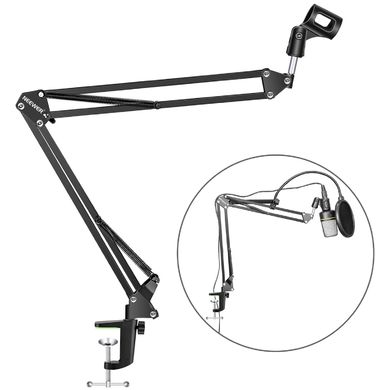 Állítható mikrofontartó a Neewer márkától. A karok erős rugóinak köszönhetően a pontos pozíciók beállítása és fenntartása nagyon egyszerű. A rögzített bilincsnek köszönhetően a tartó karját bármilyen asztalhoz vagy polchoz rögzítheti. A tartó akár 32 mm -es tápegységgel és egy kilogramm terheléssel rendelkező mikrofonokat is képes tartani.