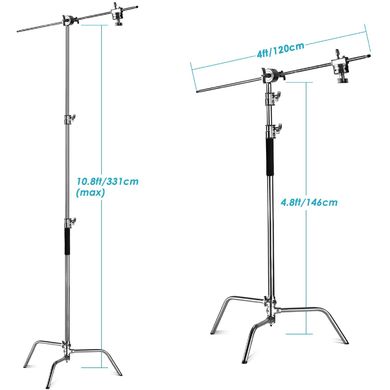 Neewer professzionális állítható fényvisszaverő tartó karral, 305 cm magasságig és karhossz 120 cm -ig. Ez a konzol a fényvisszaverők felszerelésére szolgál. Lehetővé teszi a magasság beállítását 305 cm -ig, valamint a felfüggesztő kar hosszát 120 cm -ig. Az egész tartó összecsukható, és igazán kompakt méretekbe hajtható. A kart ezután a végén szerelik fel 1/4 és 3/8 hüvelykes állványmenettel.