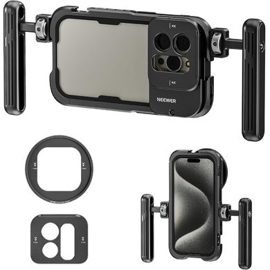 Neewer PA023 ultra stabilizáló ketrec iPhone 15, 15PRO videókészítéshez, 67 mm-es menetes optikai szűrő adapter, 4× szán aljzat