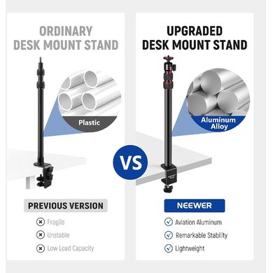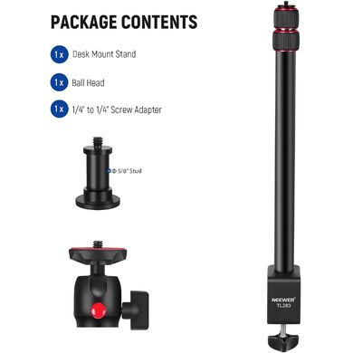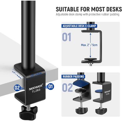 Neewer TL283 teleszkópos asztalfeszítő kar, 120°-os szorítófej dőlésszög, 360°-os forgatás, 43–102cm, max. asztallap vastagság 5cm, terhelhetőség 3 kg
