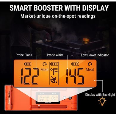 Ezeket az előre beállított hőmérsékleteket úgy tervezték, hogy segítsenek Önnek az ízletes ételek elkészítésében. Ezenkívül az alkalmazásban lehetősége van a környezeti hőmérséklet és a sütés előtti riasztások beállítására. Ezek a riasztások akkor aktiválódnak, ha a hőmérséklet a kívánt hőmérséklettől számított 3 °C / 6 °C / 9 °C tartományon belülre kerül. Okostelefonja ezután emlékezteti Önt, hogy elkerülje az étel túlfőzését vagy odaégetését, így minden alkalommal tökéletes eredményt biztosít. A TempSpike TP-962 bázisállomás egyúttal jelerősítőként is szolgál a vezeték nélküli szondás hőmérőhöz. Emellett alacsony akkumulátor-szint jelzést is biztosít. A szonda akkumulátorának élettartama a teljes feltöltés után akár 36 óra is lehet. A TP-962 vezeték nélküli szondák IP67 védettségű rozsdamentes acélból készültek, így könnyen tisztíthatók.