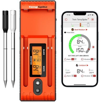 A TempSpike alkalmazással nyomon követheti a becsült főzési időt, előre beállíthatja a kívánt hőmérsékletet, értesítést kaphat a hőmérsékletváltozásról okostelefonjáról, vagy hozzáférhet bármilyen főzési statisztikához, amire szüksége lehet. Ha a Twin TempSpike-ot a sütőben lévő steakjére erősíti, soha nem felejti el kivenni a megfelelő időben.