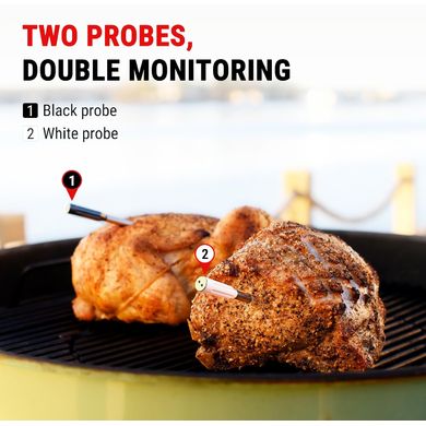 Vezeték nélküli konyhai hőmérő, Meater design, 2× szonda, Bluetooth 5.2 kapcsolat, 150 méteres hatótávolság, applikációs csatlakozás, két hőmérséklet érzékelő, IP 67