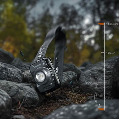 Nagy teljesítményű fejlámpa akár 125 m hatótávolsággal, 4 fénymóddal, akár 112 órával, 73 g súly, 950 mAh akkumulátor kapacitás, USB-C tápcsatlakozó, IP66 védettségi osztály.