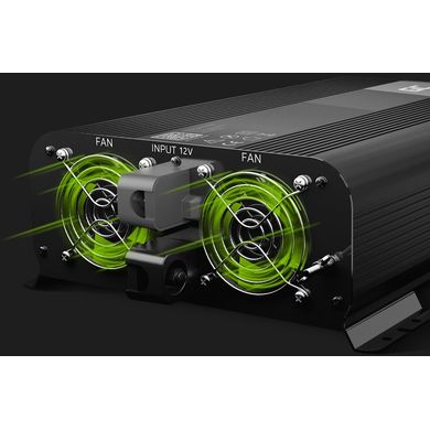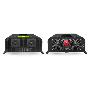 Inverter 12V-ról 230V-ra, kimenet 2 aljzat 220V és USB-A , teljesítmény 2000W, rövid távon akár 4000W, 2 ventilátor, tiszta szinusz hullámmal.