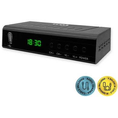 Set-top box az új DVB-T2 H.265 (HEVC) digitális műsorszóráshoz és a meglévő DVB-T-hez hagyományos otthoni vagy szobaantennán keresztül. A set-top box a TV mögött is elhelyezhető.