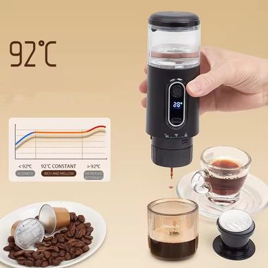 Hordozható kávéfőző kapszulákhoz és őrölt kávéhoz, támogatja a Nespresso kapszulákat vagy őrölt kávét.