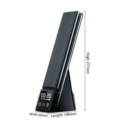 Multifunkciós asztali lámpa, telefon- és fejhallgató-töltés, USB-C, 3 fényárnyalat, óra, ébresztőóra, fekete színben