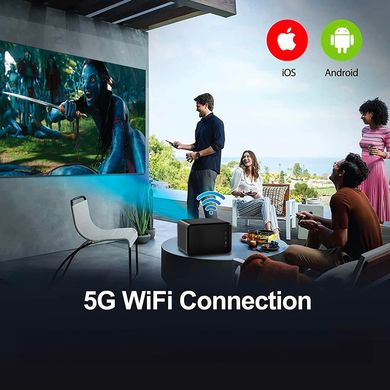 A projektor Android 9.0-t futtat. Bluetooth-on keresztül könnyen párosíthatja a projektort más eszközökkel, például okostelefonnal, táblagéppel vagy számítógéppel. Természetesen játékkonzolt is csatlakoztathat. A projektor támogatja a 2,4 és 5 GHz-es Wifi-t. HDMI-n keresztül 4K fájlokat játszhat le. A projektor alján van egymenet, amellyel állványra vagy esetleg a mennyezetre rögzíthető.