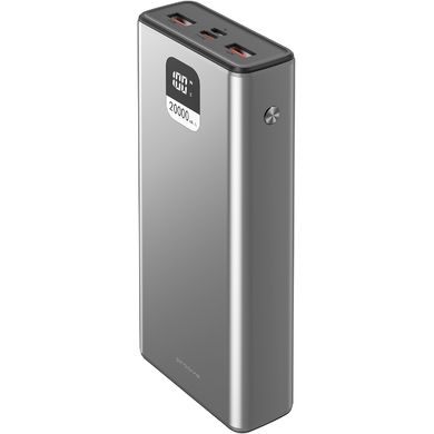 Powerbank 20.000 mAh kapacitással, világos LED kijelzővel, USB, USB-C csatlakozókkal, max. 22,5 W teljesítmény, könnyű és stílusos alumínium szerkezet