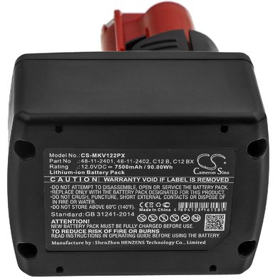 Akkumulátorok Milwaukee elektromos szerszámokhoz eq. C12 B, C12 BX, M12, M12 B2, eq. Milwaukee M12 B2, 7,5 Ah, 12V, Li-Ion, gyártó Cameron Sino Technology