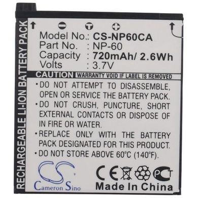 Akkumulátor Casio Exilim Zoom EX-Z19, Exilim Zoom EX-Z85, Exilim Zoom EX-Z9 és más notebookokhoz, kapacitás 720 mAh, Li-Ion, gyártó: Cameron Sino Technology