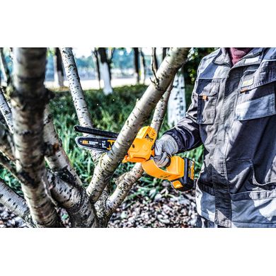 egykezes akkumulátoros fűrész, teljesítmény 400 W, tápegység 20 V, rúd távolság 20 cm, automatikus kenési rendszer, súly 2 600 g, akkumulátor és töltő nélkül