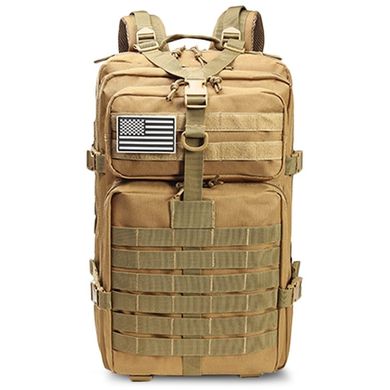 Taktikai hátizsák 45l kapacitással, nagyszerű funkcionális megoldás, MOLLE rendszer az elején a különböző zsebek, mellkas- és csípőpántok összekapcsolásához, vízálló kialakítással