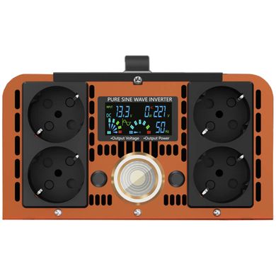 Inverter 24V-ról 230V-ra, kimenet 4× aljzat 220V, áramellátás az autó akkumulátoráról, teljesítmény 5000W, rövid távon akár 10000W, 2× ventilátor, tiszta szinusz hullám, LCD, LED világítás.