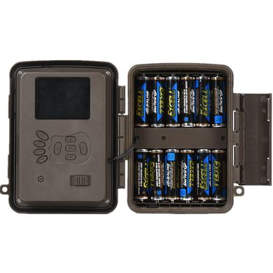 A tok kinyitása után a fotócsapda beállításához szükséges vezérlőgombokat, memóriakártya foglalatot és nem utolsó sorban