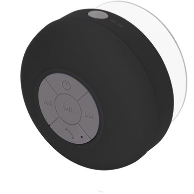 Vezeték nélküli, vízálló hangszóró lejátszásvezérlővel és tapadókoronggal a sima felületekre szereléshez. Fekete.