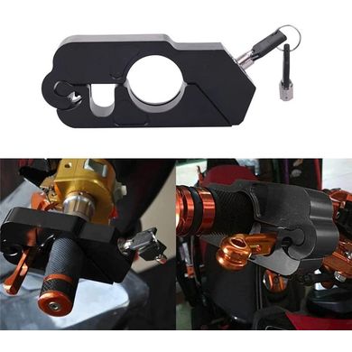 Univerzális zár gázfogantyúhoz és fékkarhoz motorkerékpáron, kulccsal zárható, alkalmas 30 – 35 mm átmérőjű markolathoz